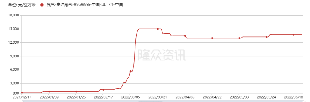 隆众资讯稀有气体行业分析师陈玉凯向记者表示,冲突爆发初期,国际买家积极囤货,拉动价位,消息面影响已经消化;本次俄罗斯宣布制裁措施后,国际买家并未大幅囤货,氖气价格仅略微反弹上涨,价格高位横盘。据隆众资讯统计,氖气价格在2021年底大约是300元/立方米,俄乌冲突开始后一度冲高,氖气价格最高达到1.8万元-2万元/立方米,后来交易趋向平淡,价格回落到1.1万-1.2万元元/立方米;俄罗斯宣布制裁措施后,氖气价格出现缓慢上涨,逼近前高,价格大约1.3万-1.5万左右水平。