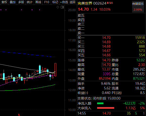 技术面来看,作为网游龙头的完美世界属于底部放量大涨态势。公开信息显示,完美世界是中国大型的影游综合体,业务涵盖完美世界影视和完美世界游戏两大板块,包括网络游戏的研发、发行和运营;电视剧、电影的制作、发行及衍生业务;综艺娱乐业务;艺人经纪服务及相关服务业务。