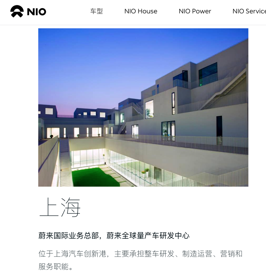 蔚来官网显示,位于上海汽车创新港的是蔚来国际业务总部,蔚来全球量产车研发中心,主要承担整车研发、制造运营、营销和服务职能。
