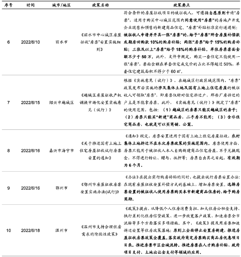 除此之外,温岭、常熟、宁波、丽水、嘉兴、温州、信阳、龙港、海宁等城市都在探索实施房票安置政策。