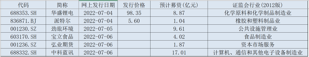 据目前安排,若无变化(7月4日到8日)共有6只新股申购,包括上证主板1只,深证主板2只,科创板2只,北证1只。