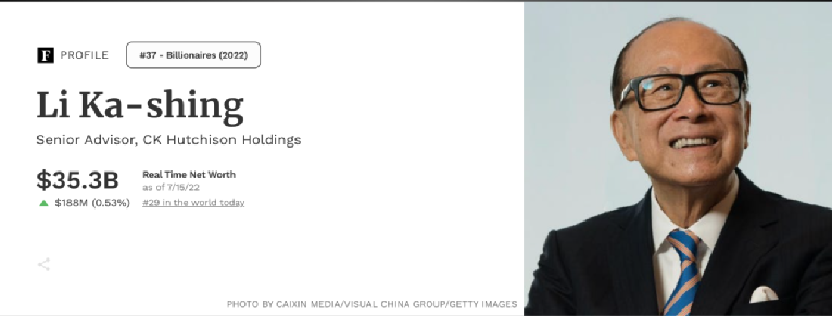 外界评价称,这一动作可能涉及李嘉诚家族资产的重新布局,但目前仍然不甚明朗。截至今日(7月15日),根据福布斯富豪榜最新统计,退休后的李嘉诚仍然以353亿美元的资产位居香港首富、全球富豪榜第29位。