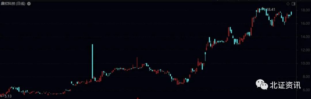 鼎欣科技在2021年1月宣布从创业板IPO“改道”精选层(现在的北交所)后,公司股票变身正宗的北交所概念股,自2021年9月在二级市场出现了明显的拉升行情,该股2021年累计涨幅达146%。