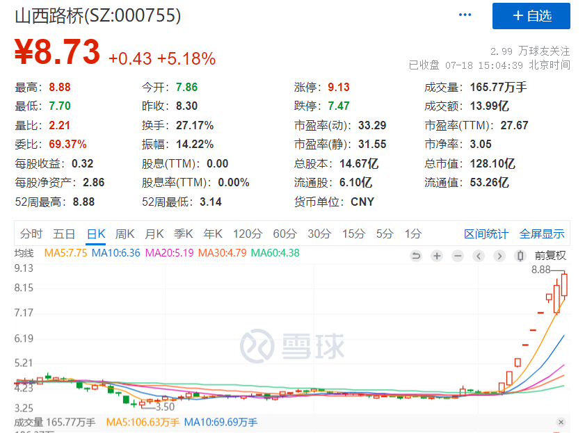 山西路桥公告,公司股票交易已累计出现股价异常波动4次,股价波动较大,投资者较为关注。为维护投资者利益,公司将就股票交易异常波动情况进行核查。经申请,自2022年7月19日开市起停牌,自披露核查公告后复牌。