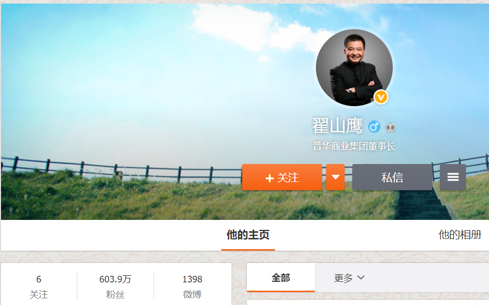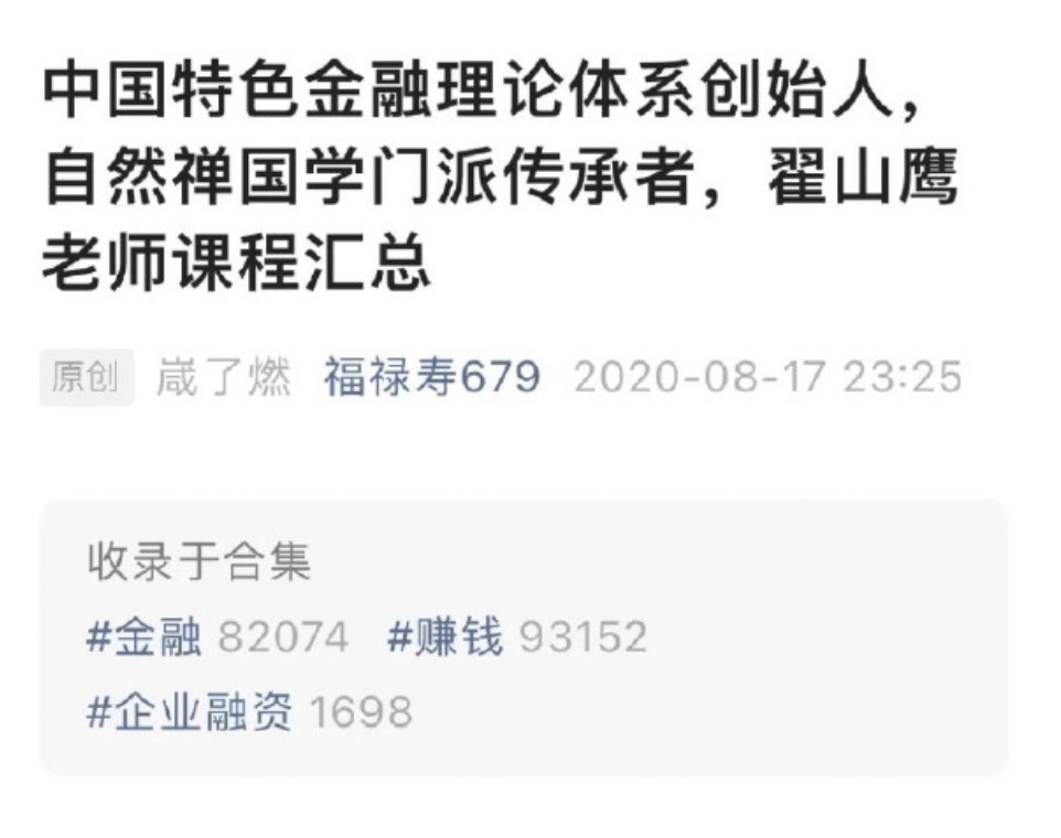 此前,翟山鹰在微博有600多万粉丝。是普华集团的董事长,翟山鹰在公众眼中是所谓的“金融大师”,是揭露金融内幕的正义化身。他还写过几本书,《中国金融生态圈》《金融防骗33天》《中国式融资》,揭露中国金融的内幕。