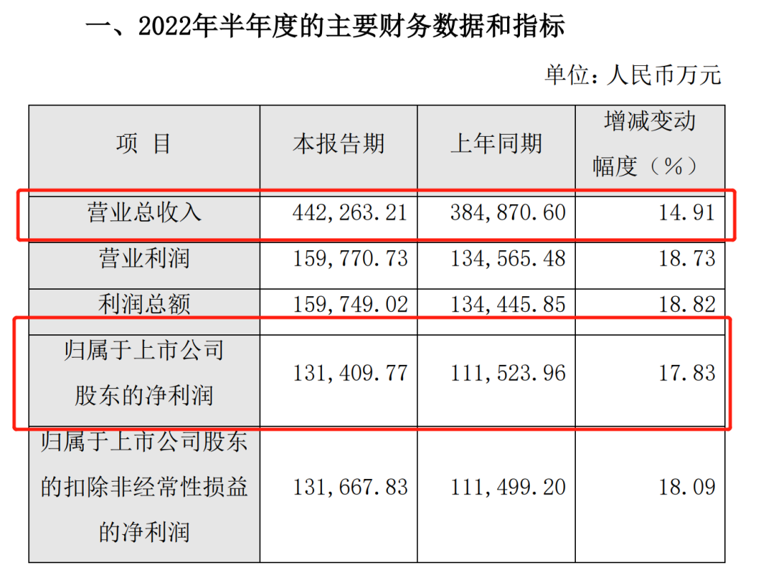 同样受益于公司核心产品片仔癀系列产品销售增加,导致营业利润增长,该公司期内营业利润同比增长 18.73%、利润总额同比增长18.82%、净利润同比增长17.83%、扣非净利润同比增长18.09%、基本每股收益同比增长 17.84%。