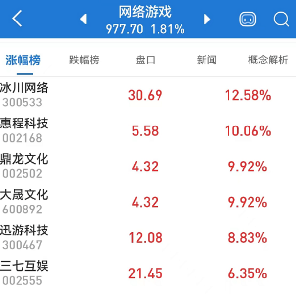 这一消息,也直接刺激游戏板块多股走强。