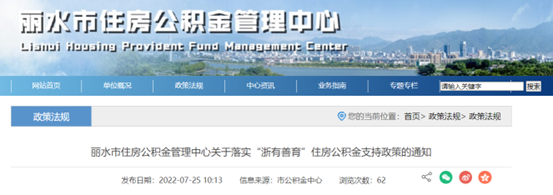 同日,浙江省丽水市公积金管理中心发布对三孩家庭的购房支持政策,其中,三孩家庭首次申请公积金贷款购首套房,最高限额上浮20%;三孩家庭申请公积金贷款,不纳入轮候,优先予以发放;三孩家庭市场租赁自住住房的,提取限额上浮50%。