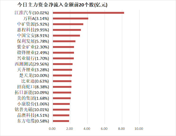 沪深300今日主力资金净流入6.31亿元,创业板净流出30.98亿元,科创板净流出4.79亿元。沪股通净流入50.72亿元,深股通净流入21.85亿元。