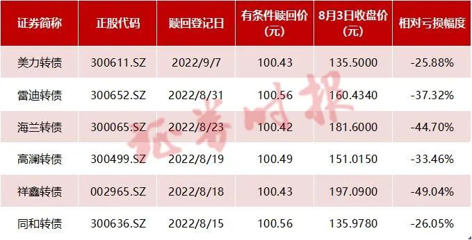 此外,同和转债、祥鑫转债、高澜转债、海兰转债也将被强制赎回,赎回日期将自8月中旬开始至8月下旬。
