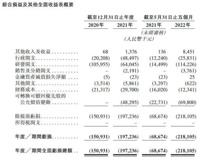 财务数据显示, 2020年、2021年及2022年前5月,真实生物其他收入及收益分别是6.8万元、137.6万元、845.1万元,期间分别亏损1.51亿元、1.97亿元、2.18亿元。