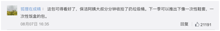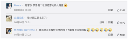 有网友评论称:“真是现在垃圾桶都很难做出这种品相的‘精品’了。我甚至不敢想像,如果我穿着这双1.2万的鞋,配上前面那个1.2万的Trash Pouch包包,走在大街上是多么特别的存在?”