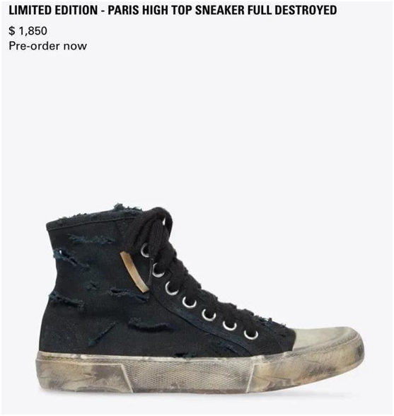 值得一提的是,这款运动鞋的“未被破坏”版本也有推出,售价仅为625美元,不到“乞丐鞋”售价的一半。