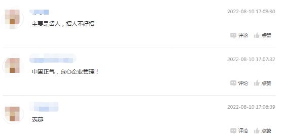 对于公司这一举动,不少网友表达了羡慕之情,纷纷称赞泉峰汽车为良心公司,也有网友表示此举主要是为了留住人才。