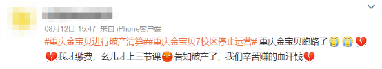 近日,重庆金宝贝7家校区宣布将暂停运营,暂停教学服务,依法进行破产清算。