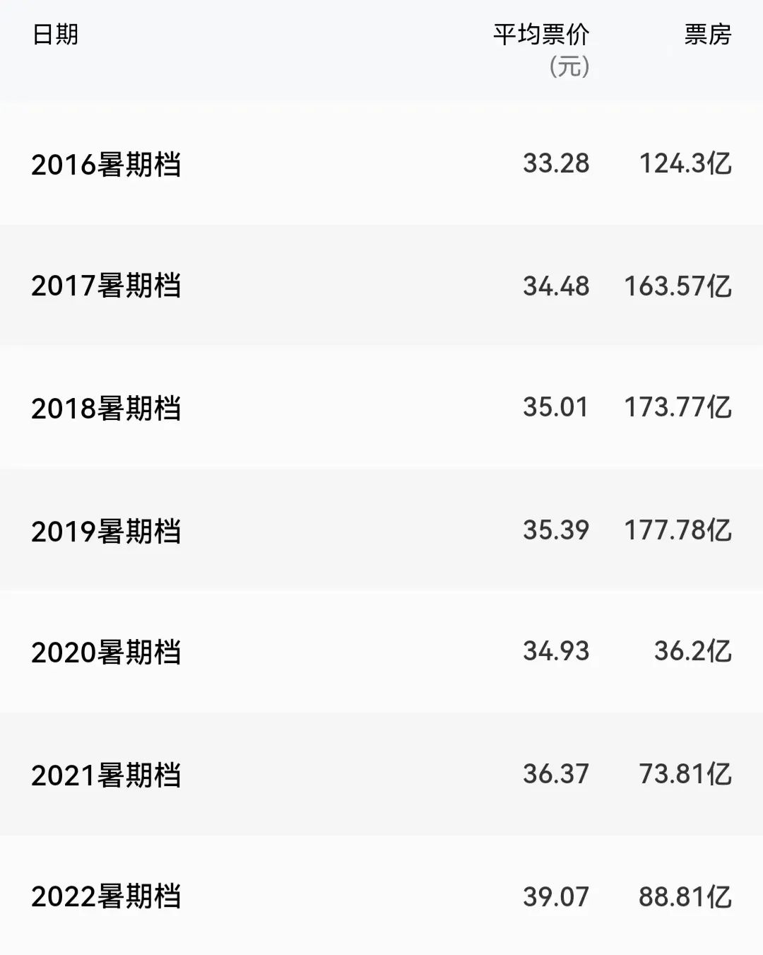 暑期档平均票价创多年新高