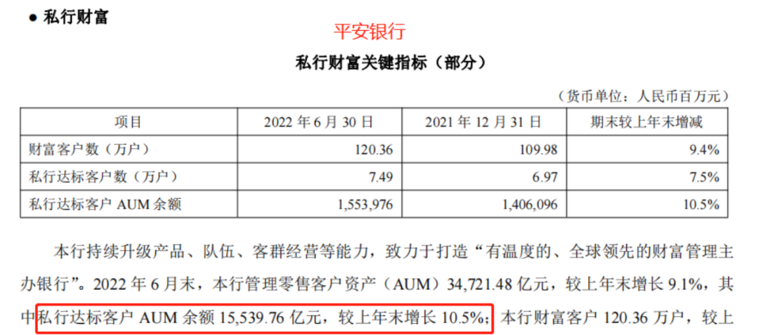 在财富管理板块持续发力的平安银行,私行上半年增速也较为领先。私行规模达到1.55万亿,增幅达到10.5%。平安银行表示,依托专业精、能力强的 私人银行家及投顾专家队伍,通过分布在全国各省会以及主要城市的 53 家私行中心,为私行客户提 供全方位的财富管理服务。