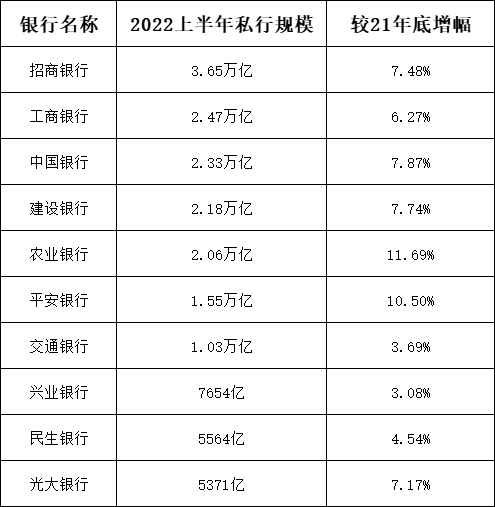 虽然2022年上半年股票市场大幅动荡,房地产行业也“爆雷”不断,不过代表顶端财富的十大私行规模,却是全线增长。