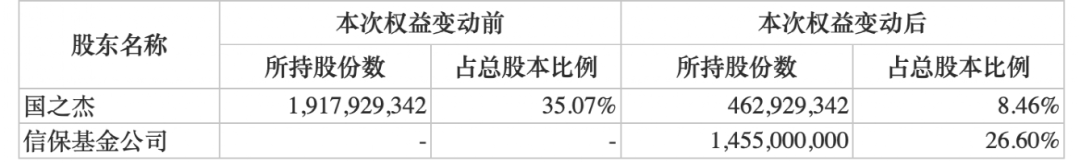公告称,本次权益变动后,公司控股股东国之杰持有公司股份比例由35.07%减少至8.46%,国之杰将不再是公司控股股东,高天国将不再是公司实际控制人。