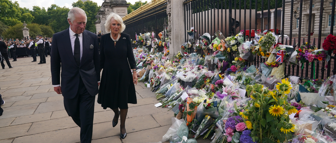 (查理三世与王后卡米拉在悼唁现场,图源白金汉宫官网)