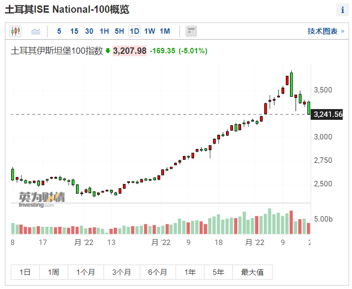 北京时间9月19日晚间10点左右,土耳其股指下跌5%,触发盘中熔断。值得注意的是,这已是该国股市近期的第二次崩跌,9月13日,土耳其股指下跌5%,触发市场熔断机制。