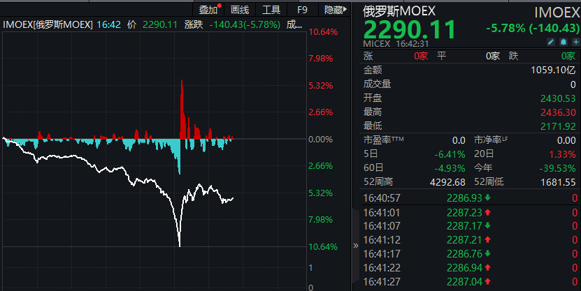 俄罗斯股市突然暴跌!