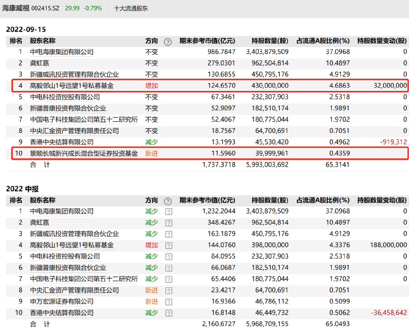 同时,明星基金经理刘彦春管理的景顺长城新兴成长混合基金也在今年三季度增持了海康威视,新进该股前十大流通股东名单,持有将近4000万股,期末参考持股市值为11.60亿元,位列第十大流通股东。
